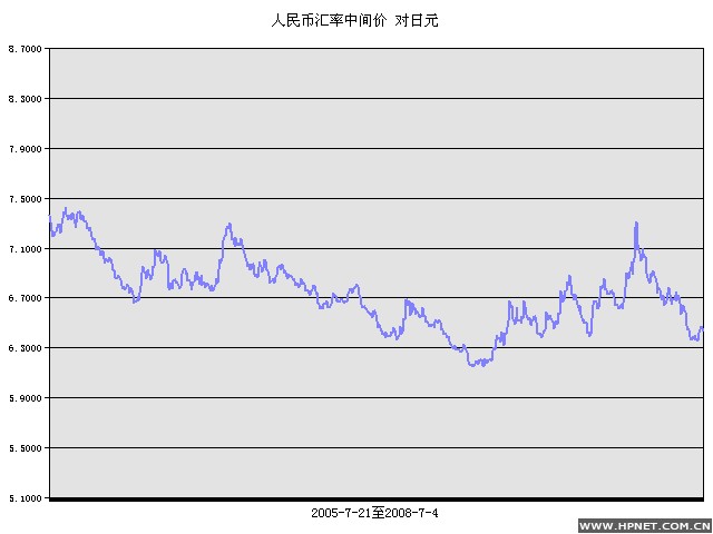 人民币元/100日元 2005年7月21 至 2008年7月4日