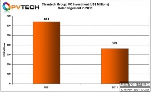 2011年第一季度内,太阳能企业总共完成26笔投资,投资总额达6.41亿美元。虽然第二季度有27笔投资,总额却降至3.63亿美元。太阳能是2010年可再生能源领域中投资最大的行业,总投资额达到了18.3亿美元,占去年全部清洁能源技术投资的24%。