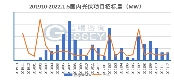 2021年12月中国光伏组件招标量环比上升0.17%