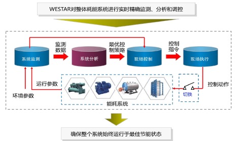 基于实际运行数据的冷热源设备智能优化控制技术(智慧WESTAR)适合于中央空调、燃油、燃气、电锅炉以及热交换站这样复杂、非线性和时变性系统的优化控制。其核心是基于神经元网络的控制优化技术,该系统实质是一个非线性系统多目标优化问题,在保证目标负荷不变的前提下,追求尽可能高的能耗设备的效率的控制策略。智慧WESTAR系统由控制接口、设备模型、环境模型、系统运行模型、数据库等构成,可实现冷热源设备的能效优化。节能率在20%-60%的范围,同时可以延长设备维修3个月左右。