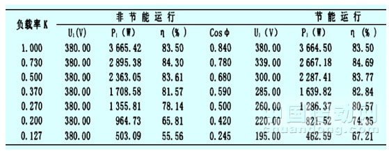 利用该节能控制器对一台3.0kW的J0系列的4极电机进行实验,实验数据如附表所示。