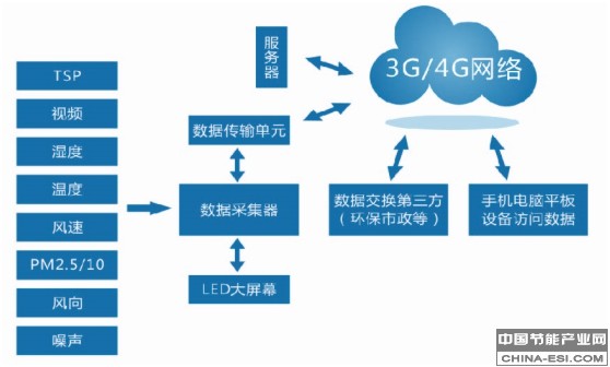 系统由数据采集器,传感器,视频监控系统,无线传输系统,后台数据处理系统及信息监控管理平台。系统集成了互联网,大数据和云技术,通过光散射在线监测仪,云台摄像头,气象五参数采集设备,实现了实时,远程,自动监控颗粒物浓度;数据通过3G/4G网络传输,可以在智能移动平台,PC机等多终端访问,
